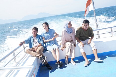 本作について「そんなにたくさんの日本映画を観ているわけではないですが、どの作品にも似ていない映画になったんじゃないかと思います」と述懐し、「監督とはこれまで3作品でご一緒しましたが、ほかの国との合作で違う言語や国籍が混ざっていても、深田さんのオリジナリティは一切失われていない。それがすごく素敵です」と深田を絶賛する太賀。深田も「自分にとってのいい俳優さんというのは、カメラの前でも普段と同じようにコミュニケーションが取れる方。共演者から受け取って返すという、日常では当たり前のことがカメラの前でもきちんとできるという印象が太賀くんにはあります。今回も、コミュニケーションやちょっとしたしぐさがすごくインドネシア人っぽい、と現地の方から言われていました。それは共演者とのコミュニケーションがしっかりとできていたから。と勝手に思っています(笑)」と、太賀との相性のよさを明かす。