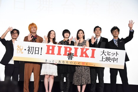 柳本光晴のマンガ「響 ~小説家になる方法~」を実写化した本作は、圧倒的な才能で文芸界を駆け上がっていく15歳の女子高生小説家・鮎喰響と周囲の人々の葛藤を描く物語。公開初日を迎えた心境を司会者に聞かれた月川は「SNSで感想を検索しているのですが、熱烈に支持をしてくれている方もいれば拒絶反応を起こしている方もいる。そういう反応が起きるだろうと予想はしていましたが、楽しんでくれた方がいてうれしいです」と思いを語る。
