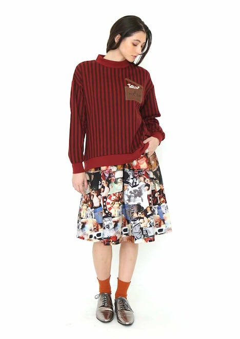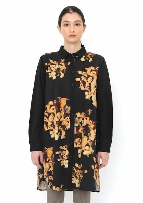 このコラボでは、映画ポスターや、少年ビリーのペットであるモグワイ“ギズモ”のイラストなどをプリントしたTシャツ、パーカー、スウェット、カーディガン、ソックスなどが登場。コラージュデザインのシャツ、シャツワンピース、スカートもそろえられた。キッズ用アイテムも用意されている。