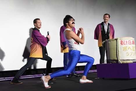 それぞれクイーンのベストソングを聞かれると、マレックは「アンダー・プレッシャー」、リーは「ドント・ストップ・ミー・ナウ」、マッゼロは「サムバディ・トゥ・ラブ」と回答。しかし、マレックは思い出したように本作のタイトルである「ボヘミアン・ラプソディ」を付け加えてアピールし、会場の笑いを誘った。終盤には、法被を着たキャストたちが鏡開きをする場面も。「ウィー・ウィル・ロック・ユー」に合わせて木槌が振り下ろされ、鏡開きは無事に成功。「ウィー・アー・ザ・チャンピオン」がフィナーレに流れる中、キャストたちは観客に手を振りながら会場をあとにした。