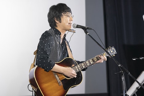 その後、山崎はミニライブを実施。同曲を観客の前で初披露したほか、「月とキャベツ」の劇中歌である「月明かりに照らされて」、主題歌である「One more time, One more chance」も歌い上げた。ライブ後、篠原は「『月とキャベツ』との2本立て上映は、もうないだろうと思います。この2作品に関わる3曲を歌ってくれた山ちゃん、22年経っても変わらんなあ、と思いました。さっき映画の中に出てきた人が、22年経ってこうして歌って、たまらんじゃないですか!」と感慨深げに語ると、会場からは拍手が巻き起こった。