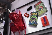 「マーベル」ブースには、スパイダーマンやヴェノムが背中にあしらわれたブルゾン、デフォルメされたアベンジャーズのタオルやトートバッグ、MARVELロゴの文房具などポップなアイテムが集結。7月に「