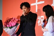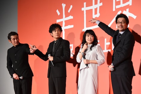 イベントでは、本日がバレンタインデーであることにちなみ、稲垣から池脇にバラの花束をプレゼントする場面も。舞台挨拶が全国に中継されていることから、稲垣は「池脇さんには感謝と、全国の奥様方には『いつもお疲れ様です』という気持ちを込めて。バランスを取って、ピンクと赤のバラの花を用意しました」と説明し花束を贈呈した。最後に稲垣は「最初に監督がおっしゃってくれたように、僕にとって新しい景色を見せてくれた映画になりました。これからも皆さんと一緒に見たことのない景色を見たいと思いますので、まずはこの『半世界』をスタートとして、もっともっといろんな作品に出ていきたいです」と思いを述べた。