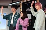 上白石ら3人は、まず竹下通りにサプライズ登場。突然の出来事に驚いた通行人の歓声を浴びながら約100mを練り歩き、パニック状態の中でフォトセッションを行った。