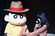 イベントでは、あいみょんがアコースティックギターの弾き語りで「ハルノヒ」を歌唱する場面も。パフォーマンスを終えたあいみょんは「今日歌えてよかったです。しんちゃんの家族があったから書けた曲です」と感慨深げに話す。「オラ、ドキがムネムネしっぱなしだったゾ!」と歌の感想を述べたしんのすけは、お礼にマリーゴールドの花束と直筆の手紙を贈ってあいみょんを喜ばせた。