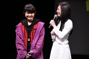 オリジナルキャラの村雨天音を演じた宮沢は「監督に一言『とにかくかっこいい村雨をやってくれ』と言われて、もっとヒントを得たかった……」とぼやくが、浜辺から「宮沢さんのスタイルのよさに、監督も『日本映画を撮ってる感じがしない、海外ドラマみたい』と言っていました」と褒められ笑顔を見せる。ボーイッシュな新キャラ犬八十夢役の伊藤は、以前も英組に参加した経験があり「前回も髪を切る役で、今回も髪を切ってと言われて……次も英さんの作品に出たら、坊主にするんじゃないか」と心配していた。