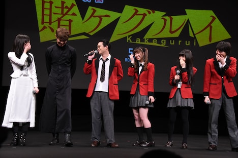 ドラマのシーズン1とシーズン2でも主演を務めた浜辺は、この映画版を「オリジナル脚本なので、誰が勝つかわからない。誰がトーナメントを制するのか楽しみにしていただきたい」とアピール。映画版で初めて賭場に上がる鈴井涼太役の高杉は「役としてはもちろん、高杉真宙としても緊張感がありました。みんなここでずっと戦ってきたのか、と」と振り返る。また早乙女芽亜里役の森川は「シーズン1のとき監督に『アクションとダンスは本当に苦手です』って言ったら、『じゃあやろう』ってことで用意されてて……(笑)。ダメって言ったじゃないですか!」と嘆いた。