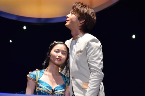 中村と木下はピアノとバイオリンの生演奏をバックに「ホール・ニュー・ワールド」の歌唱をスタート。中村は木下の手を取ると2人で魔法の絨毯に乗り込み、絨毯が上がっていく中で歌声を披露した。歌唱後、絨毯が降りていく中、中村は自然と木下を抱き寄せ、キャラクターに入り込んでいた。