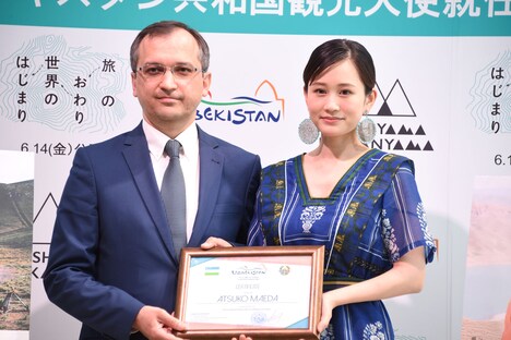 最後に前田は改めて、ウズベキスタンについて「こんなに素敵な場所があったんだと思いました。日本の人たちは好きだと思います」とアピール。観光大使として「これからウズベキスタンのよさをますます日本の皆さんに伝えられるようにがんばっていきたいです。映画を観れば、ウズベキスタンは素敵な場所だと思ってもらえるはず。一緒に行った気分になってもらえるとうれしいです」とコメントした。