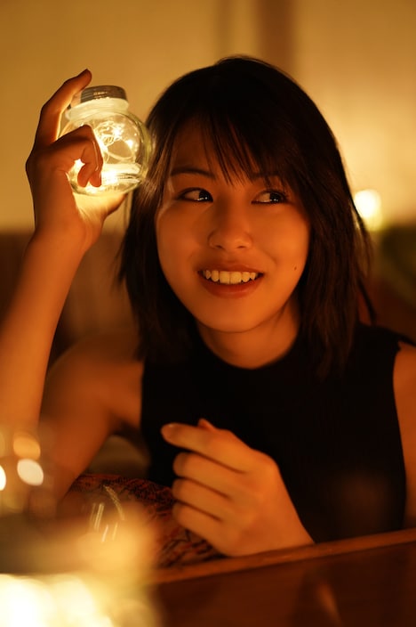 そして、今回はみなさんの知らない私の色んな姿を写真集を通して表現してみました。その中の1つが夜の撮影です。少し大人っぽい雰囲気で挑んだのですが、やはりまだまだ子供ですね(苦笑)。