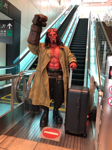 某日到着したヘルボーイは、初めての羽田空港でキョロキョロ。日本でのPR活動に奮起しつつ、展望デッキからの景色を楽しむことも忘れなかった。