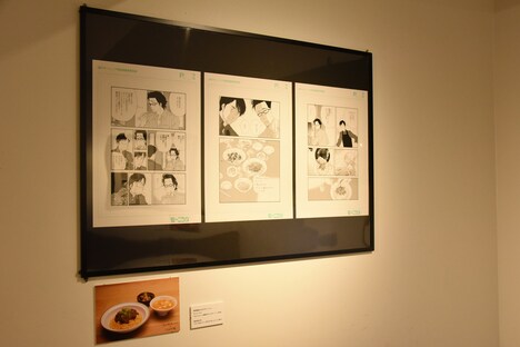 会場入り口では、シロさんとケンジが並んだビジュアルのほか、シロさんが通うスーパー・中村屋のパネルがお出迎え。ドラマのBGMが流れる店内に入ると、イベントで提供される料理の登場シーンを抜粋した原作マンガの原画がいたるところに飾られ、スクリーンにはドラマのメイキングなどが上映されていた。