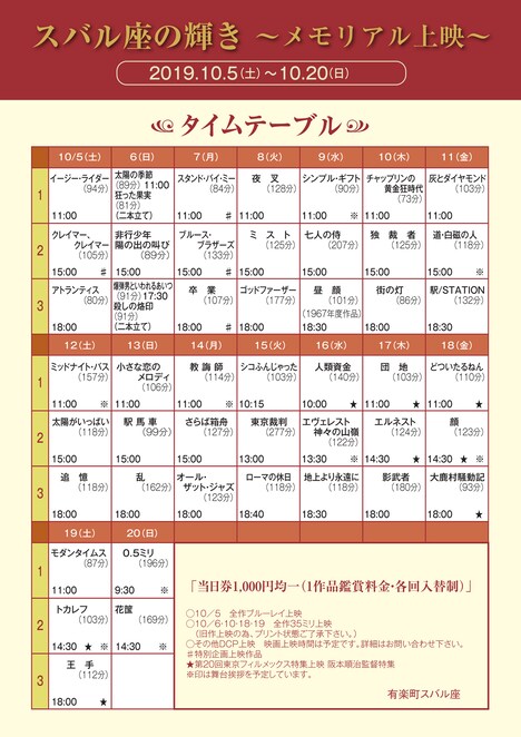 10月20日をもって閉館する東京・有楽町スバル座の特別興行「スバル座の輝き~メモリアル上映~」が、10月5日から20日にかけて開催される。