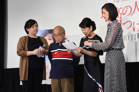 終盤には観客の中から選ばれた1組の父娘が登壇し、吉永と天海に対面する場面も。娘から父に宛てた感謝の手紙を吉永が代読すると、吉永のファンであるという父親は感激した様子で涙ぐみ、会場からは温かい拍手が起こった。天海は「今日は直に皆さんの観終わったお顔を見られて安心したというか、私たちまで幸せな気持ちになりました」とにっこり。吉永は「お手紙を代読していて、ちょうど30年前に他界した父親のことを思い出しました。もしこの映画を父に観てもらえたらどんなによかったかって、少しセンチメンタルになってしまったんですけれども、これからも皆さんがお互い支え合ってお元気に歩いていけることを願っています」とゆっくりと語りかけ、イベントを終えた。