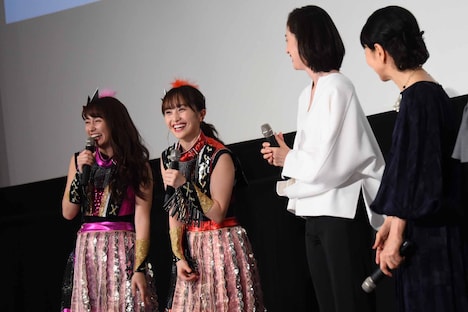 ももいろクローバーZは、本人役でライブシーンに出演した。百田は「映画の中でお二人が私たちのグッズを身に付けてくださっているんですけど、何色だったか見ました?」と観客に質問。自身のメンバーカラーが赤であるため「天海さんが黄色、吉永さんがピンク……! もし次にこういう機会があるならば、ぜひとも赤を着てほしい」と悔しそうな顔を見せる。ピンク担当の佐々木は「いや、絶対譲らない!」と強い圧で対抗。すかさず天海は「黒にします、全員推しで!」と仲介するが、百田から「赤にしませんか!?」と食い下がられ、「頭からつま先まで赤にしますよ!」と約束していた。