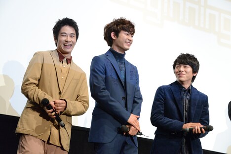 約2年前に撮影した本作。メインキャストが久々に勢ぞろいしたことを受け、芳狼役の高杉は「楽屋で会ったときみんなスーツを着ていたので、同窓会に来たような気がしました」と笑う。芳狼の親友・ワタリ役の佐野は「久しぶりなんですが、会ったら即あの日々に戻れました」と話す。学生兼アイドルである明智小夜役の堀田は、完成披露上映会には前田が参加していなかったことから「今日は安心感があります。(前田は)なんでもツッコんでくれるので」と笑顔を向ける。前田と同じくミステリー同好会のメンバーを演じた板垣は「俺は別に(前田がいてもいなくても)どっちでもよかった」とわざと冷たく言い放ち、前田から「お前に一番ツッコんでるから!」と早速ツッコまれた。