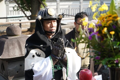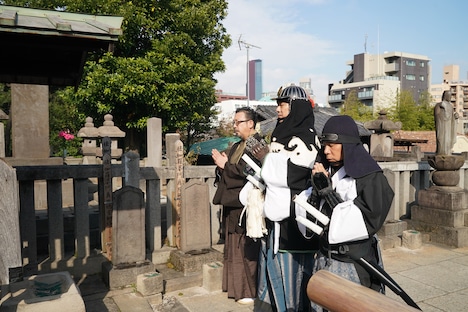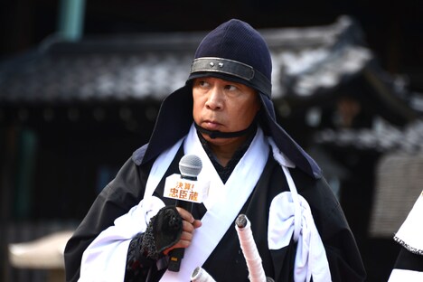 本作の制作にあたり何度も泉岳寺を訪れたという中村。約2年前に足を運んだ際のことを「脚本に悩んでいたときお墓参りに来て、内蔵助さんのお墓にお線香をあげたとき『ちょっと変わった感じの映画になるけど、大丈夫でしょうか?』と聞いたら、『ええがな、ええがな』と言っていただけた気がしました」と振り返った。