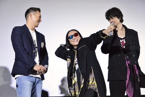 「こんなに斎藤さんや永野さんと仲良くなれると思わなかった」と話したSWAYは、イベント前に斎藤らとしゃぶしゃぶを食べた際のエピソードを披露。「永野さんがしゃぶしゃぶ食べるの本当に下手なんですよ。肉の種類がわからないから、鶏肉を赤いまんま食べようとしたり」と明かし、斎藤も「生つくねをそのまま食べてたね」と重ねると、永野は「僕、物心付いたのが去年の撮影中だったので。白髪こそありましたけど!」とジョークを飛ばす。また、SWAYは劇中である人物の首が切断されるシーンでのリアクションに悩んだといい、「(首が)もげた人を見たことないので、みんなで正解を探しましたよね。いきなり発狂するのか、放心状態なのか……」と述べ「いい勉強になりました。次もげた人を見たときは対応できると思います」と素直に語り、斎藤らを笑わせた。