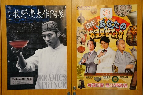 本作で山田が演じたのは、“陶芸王子”として親しまれる若手陶芸家・牧野慶太。写真には、牧野が熱心に陶芸に取り組む様子や、彼のファースト写真集「君、僕。そして陶芸」の書影、作陶展のポスターなどが写し出されている。