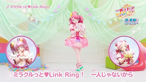 「スター☆トゥインクルプリキュア」「HUGっと!プリキュア」「ヒーリングっど▼プリキュア」という3世代が集結する本作は、プリキュアが“同じ今日”を繰り返すさまを描いたタイムサスペンス。動画ではテレビアニメのエンディング主題歌でもある「ミラクルっと▼Link Ring!」の振り付けをキュアグレース、キュアスター、キュアエールの3人が教えてくれる。