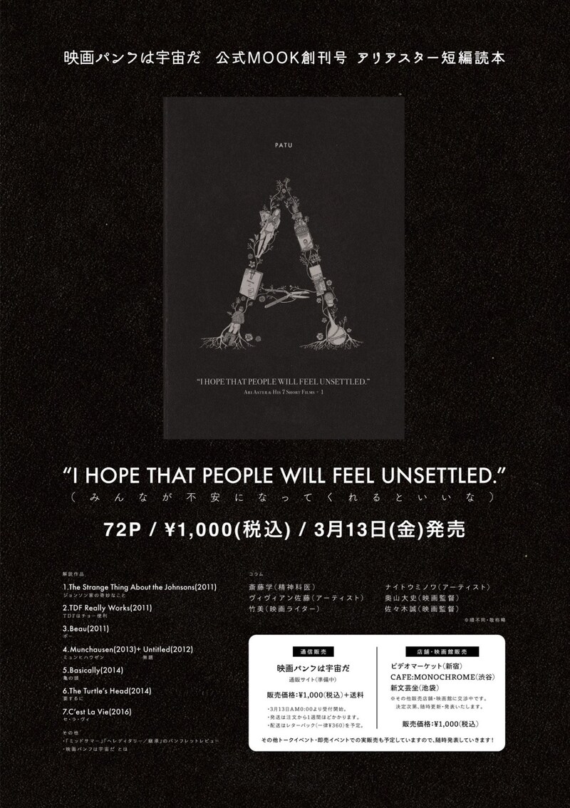 本書は映画パンフレットの魅力を発信する団体「映画パンフは宇宙だ」の自費出版となる。価格は税込1000円で、計72ページ。東京・ビデオマーケット、CAFE:MONOCHROME、新文芸坐で店頭販売されるほか、「映画パンフは宇宙だ」の公式サイトで通販も行われる。