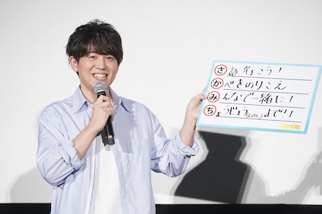 イベント中盤には永瀬演じる実写版・坂道の「今泉くん、鳴子くん、追いついたよ! 一緒に走ろう!」というセリフに、山下が声を当てるコーナーも設けられた。「本当にアフレコしてもらっていいんですか!? 見るだけなのに緊張してます」と興奮気味の永瀬は、山下の生アフレコを目にし「本当にヤバい……全身で感じました!」とコメント。対する山下は「心臓がバクバク……ハイケイデンスです!」と言い、「このセリフはアニメの坂道のオーディションのときから言っていたセリフで思い入れがあります。再びこのような場でこのセリフを言う日が来るとは思ってなかったです」と感慨をにじませた。