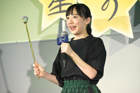 イベントではまず、原作者の今村夏子からのコメントを紹介。「時折り見せる力強いまなざしに、この子はきっと大丈夫だ、とこちらに思わせてくれるような、一筋の希望を見ることができました」という今村からの賛辞に、芦田は「うれしいです」と笑顔を見せつつ、「この映画は原作に忠実な作品だったので、撮影中は小説でどのようにちひろの心情が書かれていたっけと何回も読み返していました」と明かす。