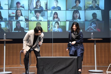 教師になるか就職するかで悩んでいるという学生には、吉高が「迷っているんだったら両方やっちゃえ!」と声を掛ける。横浜も同意しつつ「僕は高校3年生のとき、大学に行くか、格闘技の道に進むか、俳優になるかという3つで悩んでいて。それでお芝居をしたかったので親に相談したら『選んだ道に進めばいいよ』って言ってくれたんです。吉高さんの言うようにいろいろ迷ってどっちもやるっていうのもありですし、やりたい道に進んでほしいと思います」と真摯に回答。最後に吉高は「皆さんの夢や不安、希望を画面越しにたくさん感じることができました」と、横浜は「僕も歳が近い分、皆さんと話をするのが楽しかったですし、相談などを聞いていろいろと考えることがあったので勉強になりました」と感想を伝え、講義を終えた。