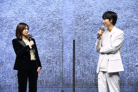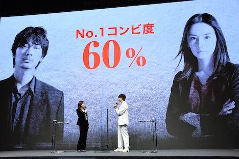 イベントでは映画の内容にちなみ2人の“No.1コンビ度”を測る2択形式の質問コーナーも。すべての回答が一致したら100%というもので、「撮影は大変だったか」「走るのは得意か苦手か」「映画のネタバレはあり派かなし派か」「焼き鳥はタレ派か塩派か」「犬養と高千穂、主導権を握っていたのは?」という設問が用意された。北川は「ガチで自分が思う答えを書いてます」、綾野は「僕はガチガチに(回答を北川に)寄せていってます」とスタンスを表明。結果5問中3問しか一致しておらず、綾野は「あれ、景子ちゃん。これはマズイわ。バディうまくいってない?」と愕然とし、北川は60%の一致率に「中途半端になってしまいました(笑)。やり直したいね……深読みしちゃった部分もあるのでもう1回初日(舞台挨拶)でやりたい」と意気込んだ。
