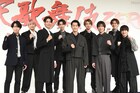 Snow Manのメンバーは、映画の象徴でもある桜色を衣装のどこかにあしらったシミラールックで登場。
