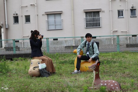 メイキングカットには、深川が撮影の合間にカメラを構える様子が。結子の幼なじみ・星野を演じた