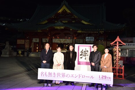 キャスト陣はトークイベントの前に神田明神で祈祷を行った。トークステージに上がった主演の岩田はまず、祈祷に込めた思いを筆で表現することに。「絆」という文字を書いた岩田は「キャストや監督みんなで考えた言葉です。この作品を一言で表すなら『絆』しかない」と力強く語る。岩田が筆を執る様子を横で見ていた新田が「かっこよかった。すごく上手で、習われていたのかなと思いました」と驚いた顔を浮かべると、岩田は「ありがとうございます。照れくさいな、なんか」と笑った。