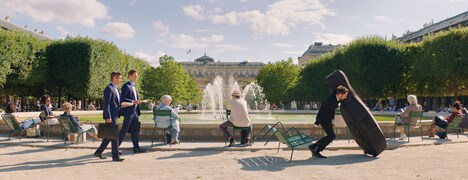 劇中では、パリのルーヴル美術館やニューヨークのセントラルパークといった観光名所や美しい街並みが映し出される一方で、警官や戦車が突如出現するなど政治的メッセージが込められた場面も。またニューヨークでは、本人役で出演した俳優ガエル・ガルシア・ベルナルからプロデューサーを紹介されるが、“中東の平和”という新作のテーマを笑い飛ばされ、スレイマンはあっけなく退散することに。いかに遠くへ行こうとも、何かが故郷を思い起こさせ、世界が“パレスチナの縮図”のようだと感じた彼は「我々の“故郷”と呼べる場所とはいったいなんなのか?」と根本的な疑問を抱く。