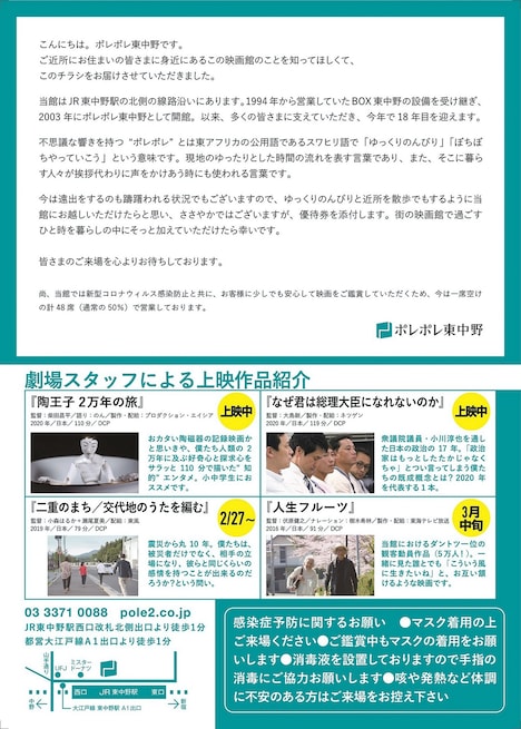 ポレポレ東中野がご近所に割引チラシをポスティング「街の映画館で過ごすひと時を」 https://t.co/lstPMwVoaj