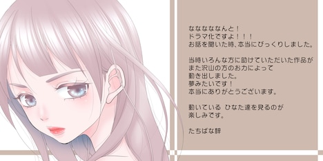初めてこの作品を読んだ時、自分の想像を毎度上回る展開に魅了され、ページを捲る手が止まりませんでした。そして今、ひなたを自分が演じられることが本当に楽しみで、撮影が始まる日を毎日ドキドキしながら待っています。今回ドラマでは原作とは少し違ったエンディングが待ち受けています。原作を好きな方にも、これからこの作品に出会う方にも楽しんでいただけるよう、ひなたの気持ちをしっかり受け継いで、キャスト、スタッフの皆様と丁寧に作り上げていけたらと思っています。是非、是非! 楽しみに待っていてください。