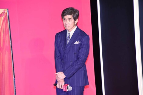 キャスト陣は、大泉の顔がデザインされた巨大フラッグの口元部分から登場。大泉は「あんまりうれしいもんじゃないですね。プロデューサーは『やりましたよ大泉さん!』って言ってましたけど」とさっそくぼやくも、池田や國村から「大泉さんの達者な口から登場することができてご利益を感じております」「映画の中の大泉さんは口から出まかせの人なんです。今日は私も出まかせの1つになってるなと思いながら出てきました」と感想を伝えられ、照れ笑いを浮かべる。