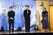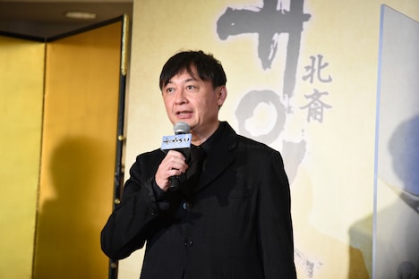 北斎の青年期パートでライバルを演じた玉木は「才能がある人たちが集まり、それを取り仕切る(蔦屋)重三郎がいて……というのは、ある意味現代の芸能事務所のようで、重なる部分がありました」と比較。撮影については「柳楽くんの目がすごく印象的で、内に秘めた闘志を感じた」と振り返った。また「包容力と慈愛を持って演じた」と話したのは瀧本。「コトは妻でありながら母のようでもある。北斎さんは自分と闘い続けている人だと思ったので、少しでも安らいでもらえるような空間作りをできたらと」と述懐する。