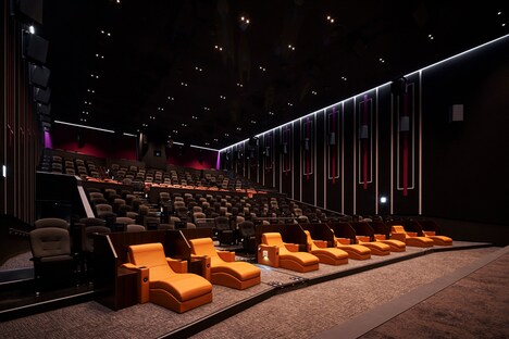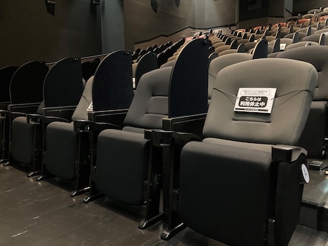 座席は選べる4タイプ。上下可動式パーテーションと両サイドのひじ掛けを標準装備したノーマルシート、従来座席よりも広いパーソナルスペースを確保したアップグレードシート、足を伸ばして鑑賞できる最前列のコンフォートシート、くつろぎながら映画を楽しめる電動リクライニングシート仕様のグランシアターが用意された。