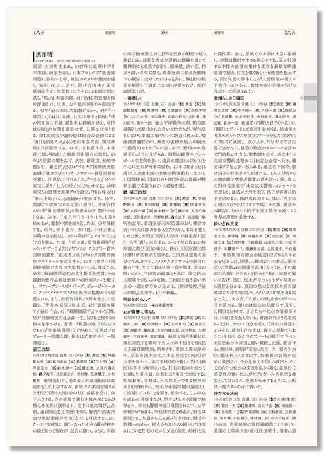 ただし、編集作業は困難の連続に見舞われた。たとえば封切日や作品の長さが資料により異なったり、作品題名が資料とフィルムで違ったり、と、二十数年の悪戦苦闘の果てに、映画ほど事典に適さないものはないのではないかとさえ思うに至り、愕然とした。力の及ぶかぎり、さまざまな文献を精査し、流布されている諸説の校訂、確定に努めたが、自ずから限界はある。この先は世の諸賢の叱正を請うのみである。