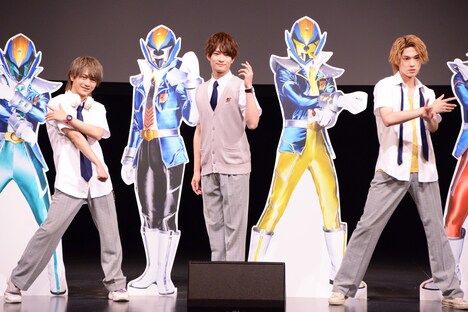 「戦隊ヒーローになれるのはうれしい!」と笑顔をこぼした浮所は「僕は、すでに5人が変身した姿を見たんです。これがヒーローだ!と感動しました。変身する前の物語、変身ポーズ、5人の関係性などを楽しんでほしいです。僕が変身するのかどうかも注目ポイントです」と声を弾ませる。藤井は「僕が演じる(森村)直哉はダンスが得意なので変身したあとにダンスっぽい要素があるんです。味が出せているんじゃないかなと思います!」と、金指は「僕が演じる(桜井)一嘉は変身する前は男の子的な面を見せているんですが、変身後はちょっと中性的な部分も見せます」と紹介した。