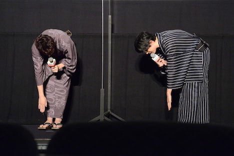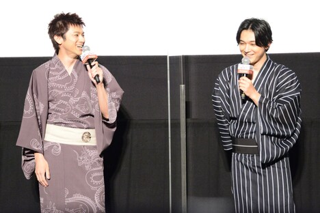 プライベートでも親交のある吉沢と山田。山田は「僕は戦隊もの出身で、彼はライダー出身。舞台挨拶が一緒になって、メイク部屋で隣になったんです。『ものすごいイケメンですね!』としゃべり掛けたのが始まりですね」と初対面を振り返る。吉沢は「(イケメンと)言われすぎているので、覚えてないんですよね……(笑)」と茶目っ気たっぷりに返し、「一番印象に残っているのは共演作の打ち上げの場で、ほぼ初対面で(山田と)ディープな接吻をしたことですね。お酒も入っていたので、いろんなところで男性同士がキスしていまして……」と笑う。山田は「引いてるやないかい!(笑)」と会場を見渡したあと、「別の作品で本当にキスシーンがあったときに、『僕たち初めてじゃないんです』って言ったら、スタッフさんがえ? え?となってました」と裏話を披露した。