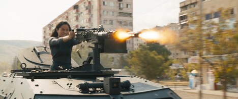 映像には、世界を掌握できるデジタル装置“アリエス”を敵から奪い返すため、エルがマシンガンで大型トラックを撃つシーンが収められている。ワールドプレミアに参加した際、サワイは「マシンガンを撃つシーンはCGIや特殊効果無しで行っていて、そのような撮影をロケーションでできるということはなかなかない経験だった」と振り返っている。