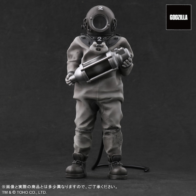 平田演じる芹沢博士のフィギュアは東宝作品のキャラクターを立体化したシリーズ「東宝マニアックス」から登場。ゴジラを倒すための兵器であるオキシジェン・デストロイヤーを抱え、潜水服を着た姿が全高約16cmで造型された。価格は税込6985円で、プレミアムバンダイおよび、エクスプラスのECサイト・少年リックでは4月26日23時まで予約を受付中。発送は9月を予定している。準備数に達した場合は予約の受付を終了する可能性もあるため、確実に欲しい人は早めに注文しよう。