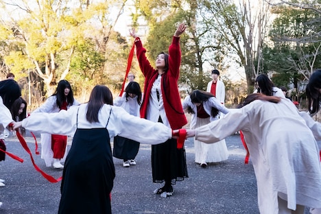 本作は霊が出るとうわさの廃団地を訪れ、怪奇現象に巻き込まれる大学生たちの姿を描いた都市伝説ホラー。萩原が死恐怖症(タナトフォビア)を抱える主人公・史織を演じたほか、