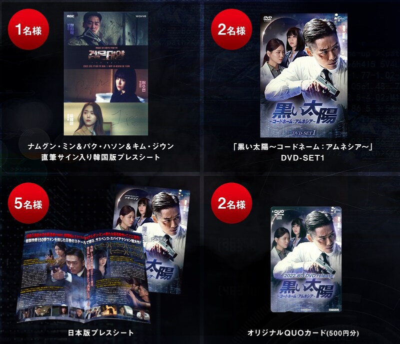 発売中の「黒い太陽~コードネーム:アムネシア~」DVD SET1には第1回から第14回を収録。9月2日に発売されるSET2は第15回から最終話となる第28回が収録されている。また同作はU-NEXTにて独占配信中だ。