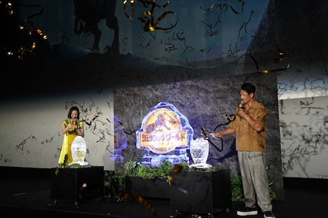 コリン・トレボロウが監督を務めた本作は「ジュラシック」シリーズの最新作にして完結編。7月29日に日本での公開を迎え、週末の観客動員ランキングで初登場1位を獲得。公開1週目にして興行収入20億円を記録した。周囲からの反響について、主人公オーウェン役の玉木は「小学生ぐらいの子供がいる友人から劇場のパネルと撮影した写真が送られてきました。家族で観ている人が多いようですね」とコメント。クレア役の木村は「ちょうど夏休みですし、子供たちが本当に楽しみにしているみたいで。ちょっと怖いかなという子もいましたが、実際に観てみたら怖いというより深い話です」とストーリーの面白さもアピールする。