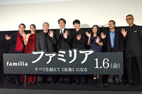 成島は「言うことを聞かない野良犬みたいな連中だったけど、それがかわいくて」と目尻を下げながらキャストたちを見やり、「みんな勇気を持ってがんばってくれました。工場などで働きながら撮影に参加してくれた。そのリアルさがスクリーンに映っていると思います」と彼らをねぎらう。役所は「ブラジルのみんながこんなにおとなしくて、立派なスピーチをするいい子だなんて。僕が知っているみんなと違う気がする(笑)」とジョークを飛ばし、緊張気味の5人を和ませた。