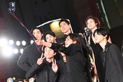 Premium night red carpet event of new movie "Tokyo Revengers 2 - Chi no Halloween hen - Unmei -" at Tokyu Kabukicho Tower on 6 Apr 2023 - Kitamura Takumi, Yamada Yuuki, Sugino Yosuke, Imada Mio, Maeda Goudon, Shimizu Hiroya,
