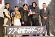 柄本は「池ちゃん(池松)は、映画を観ると、面を取っても面をしているみたいに見える。ライダーの面の顔と似ていた。それくらいライダーと同化していたと思う」と指摘。池松は「自分ではわからないですけど…」と照れ臭そうにほほえんだ。