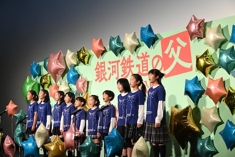 イベント冒頭では、イーハトーブ子ども合唱隊が賢治の作詞・作曲による「星めぐりの歌」を披露し、澄んだ歌声で観客を魅了。そして壇上にキャストと監督が勢ぞろいし、本作の印象的なシーンやセリフを語り合った。役所は「明治・大正・昭和と時代が変わる物語に合わせて、明かりも変化しています。最初のほうはランプの明かりだけなので暗いですが、とても美しい映像になりました。明かりの雰囲気が変わっていくのを楽しんでいただきたい」と呼びかける。すると菅田が「ランプがたくさん割れて大変だったんですよ。役所さんとのお芝居でヒートアップして、ランプにぶつかっては壊れて」と告白。「僕たちがけがするよりランプが壊れるのをスタッフは(心配していた)」と苦笑する役所に、菅田も「ランプは替えがきかないので」と冗談めかして大げさにうなずいた。